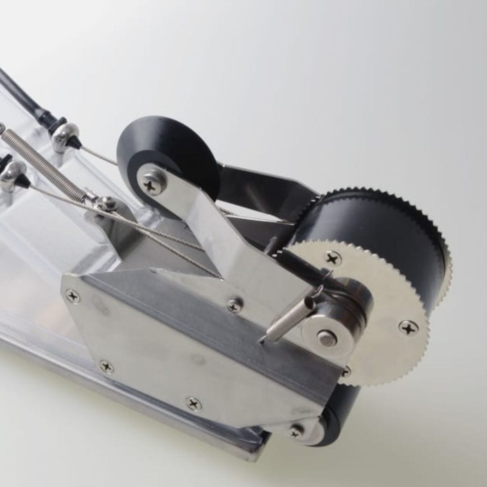 Jedna od glavnih prednosti Mud Box Pro uređaja jeste odvojeni creaser wheel i cutter, koji se pojedinačno upravljaju putem zadnjih kontrola. Ovo omogućava preciznije izvođenje svakog segmenta posla – od postavljanja trake do njenog rezanja i formiranja savršenog pregiba. Dodatno, traka se može odrezati jednostavnim povlačenjem ručke, bez potrebe da skidate kotačić s trakom sa zida – što štedi vrijeme i smanjuje prekide u radu.
